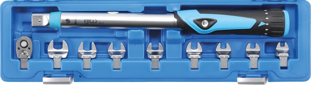 - 8 Maulschlüsselköpfe in folgenden Größen: SW 7 – 8 – 9 – 10 – 11 – 12 – 13 – 14 mm